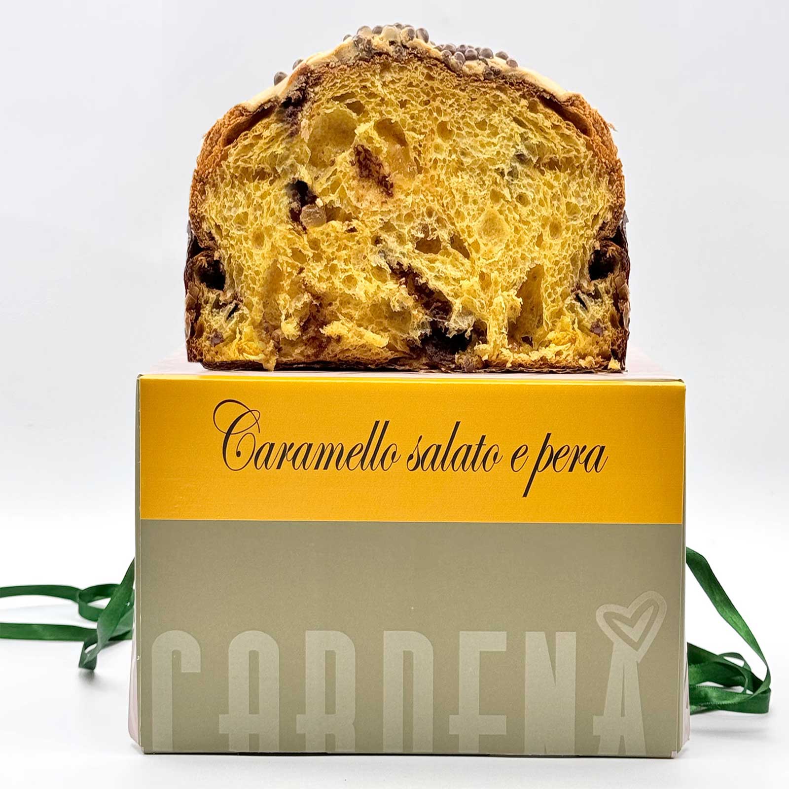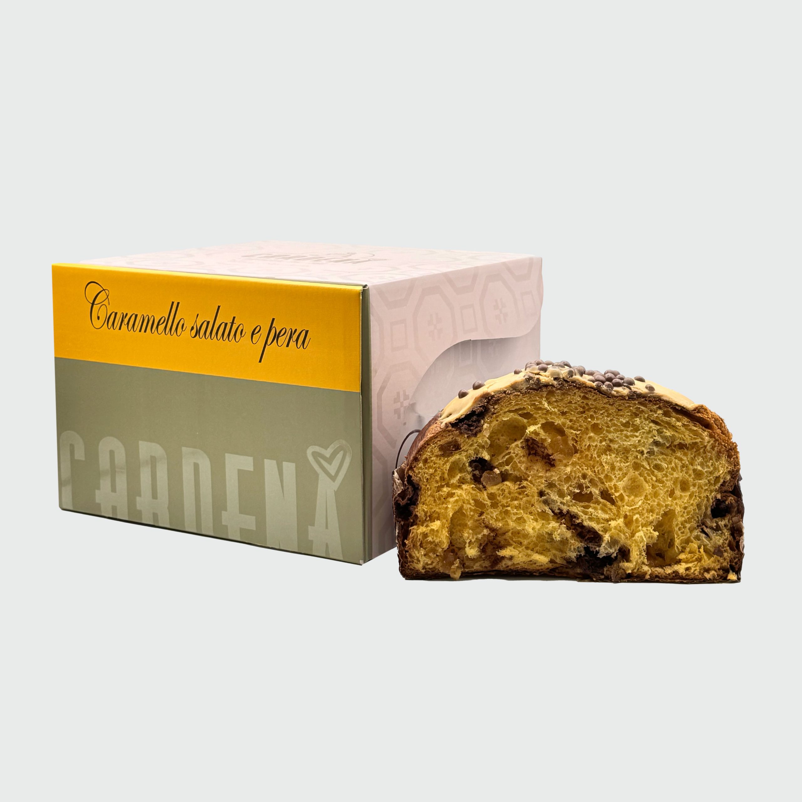 Il profumo avvolgente del caramello salato incontra la delicatezza della pera Williams, dando vita a un dolce armonioso, dal gusto unico e indimenticabile. L’impasto soffice e fragrante è ottenuto da pasta madre viva, burro e uova selezionate, arricchito con pezzi di pera succosa e una dolce nota tostata.