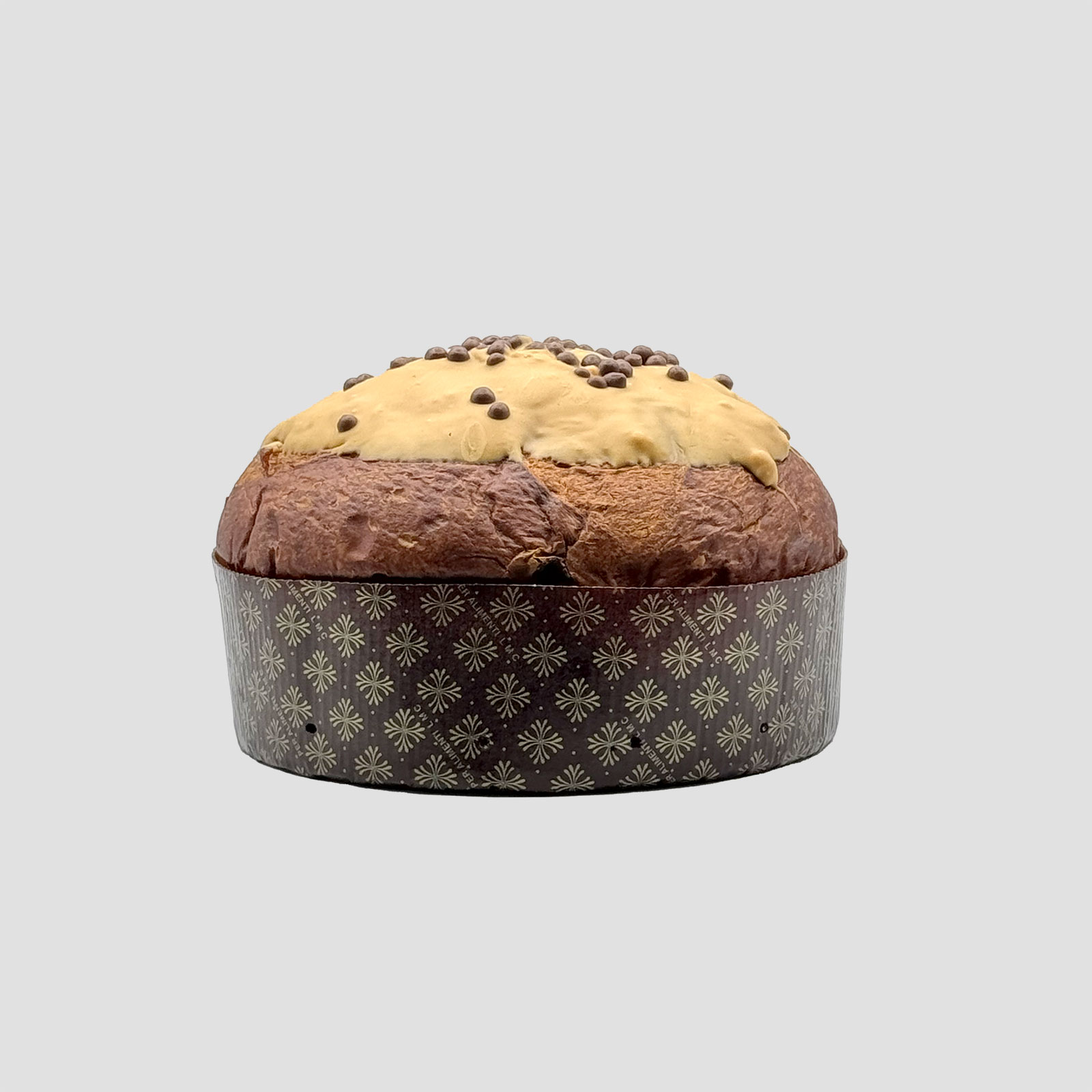 A completare, una glassa lucida e dorata al caramello salato, arricchita con croccantini al cioccolato al latte che regalano un contrasto elegante e gourmet ad ogni morso.